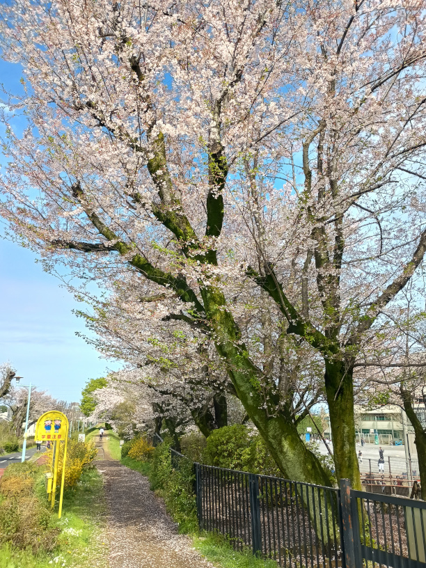 次は小学校横の桜。小学校といえば桜ですよね。この土手っぽいところは桜以外にも並んでるので「桜ボリューム」は控えめ。