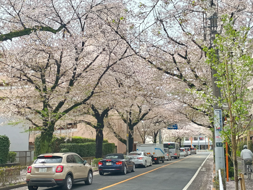 今年は満開の時に車で一回くぐりました。その後、一週間経ってるので流石にボリューム落ちてますね。
