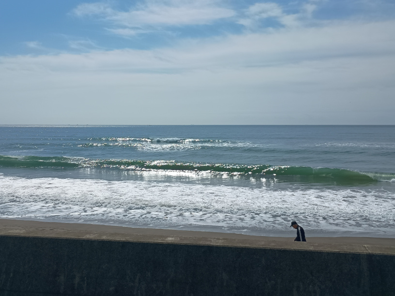 入場してすぐ、海が見える。今日は良い波が立ってた。