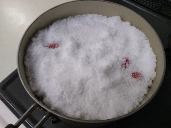 水が出るとこんな感じ。ここまで出れば煮始めます。