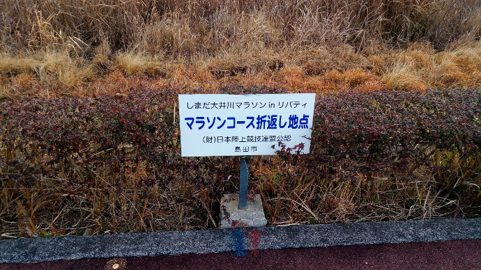 蓬莱橋を経て数本橋を越えて、しまだ大井川マラソンの第二折り返しポイントまで来ました。数ヶ月前の2017年しまだ大井川マラソンでは、シンスプリントの痛みでココも歩いて通過したなぁ。来年はちゃんと走って記録更新を狙いたいトコロ。そういえば、妻の両親にはサブ3を見せていませんね。来年の目標にしましょう。