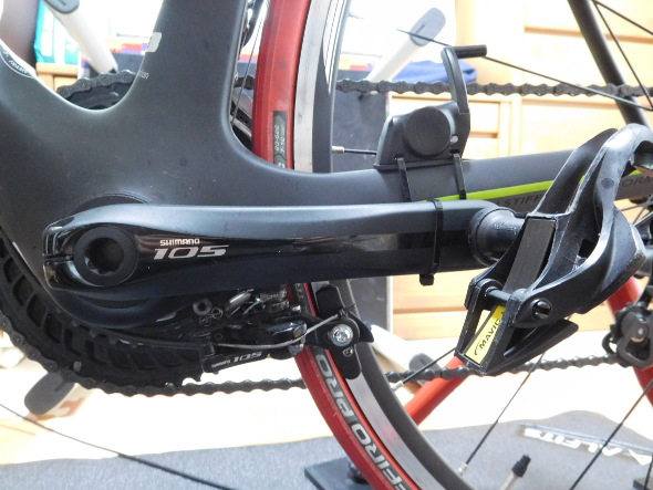 パワーメータの着いたクランクを装着!ペダルも装着!!